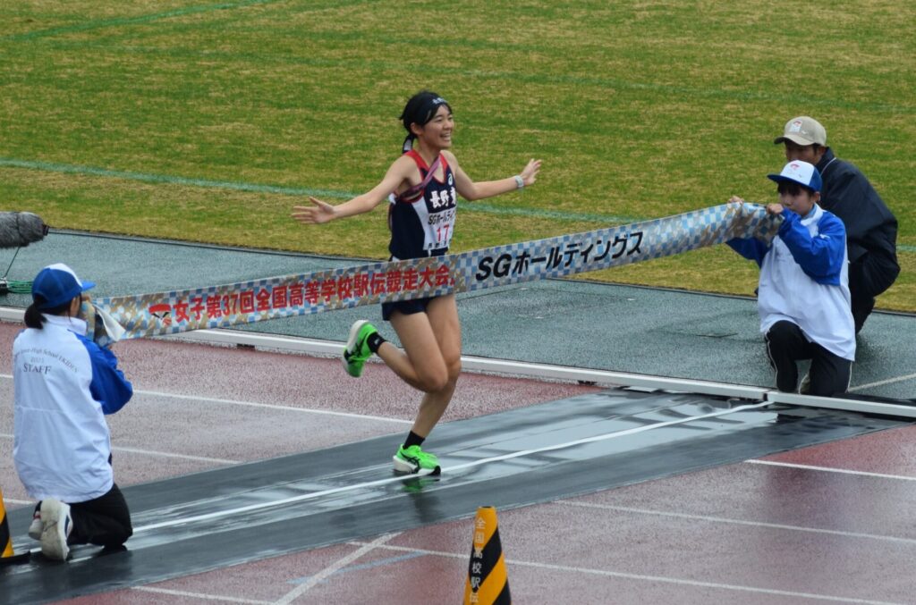 女子の長野東高校は、1区の川上選手が区間賞の快走で流れを作ると、3区の真柴選手も区間新記録を樹立して後続を突き放しました。その後も一度も首位を譲ることなく、見事な完全優勝を果たしました。